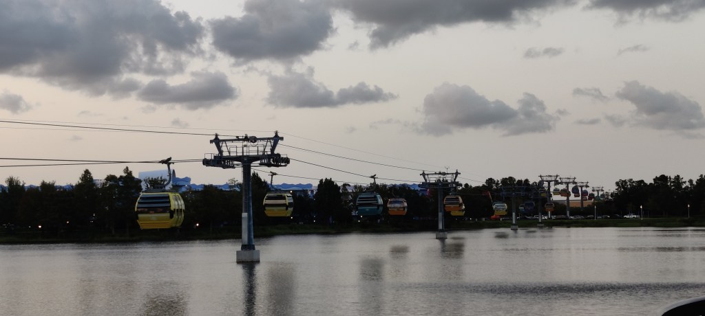 Art of Animationin paras julkinen kulkuväline oli kuitenkin Skyliner eli kondolihissi, jolla pääsi niin Disney’s Hollywood Studiosille kuin EPCOTiin. Skyliner on kuin iso hiihtohissi, jossa maksimissaan 8 hengen kondolit kulkevat kaapeleita pitkin hotelli- ja puistoalueiden väliä. Kulkuväline on nopea, kätevä ja yksityinen – sitä ei survota täyteen, vaan seurueilla on ihan oma rauhansa. Jos olet korkeanpaikankammoinen, kokemus voi olla hieman jännittävä, mutta siitä selviää, jos istuu keskellä. Lisäksi hissit on koristeltu kivoin teemakuvin, mutta vaikka miten yritin ja elättelin toiveita, emme koskaan päässeet DuckTales-kondoliin. Ostin sitten sellaisen pienen koriste-esineen itselleni muistoksi.