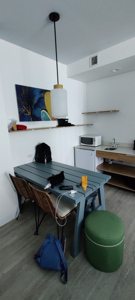 Huoneissa oli melko vahva ilmastointi, jota sai onneksi säädettyä. Silti ilmanala oli sen verran kostea, että vaatteiden kuivumisessa kesti ikuisuus. (Tarjolla oli toki vieraille pesulapalveluita, joista kuivausrumpujen käyttö olisi voinut olla järkeväkin ratkaisu.) Sen verran iso lämpötilaero sisätilan ja ulkoilman välillä kuitenkin oli, että sisällä pitkähihainen ei ollut yhtään liikaa, ja oikeasti kaipasin kotiin jättämiäni villasukkia!